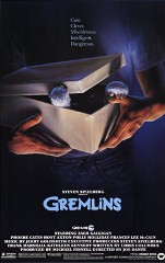 Gremlins begins with inventor Rand Peltzer trying to find a quick gift for his son Billy before returning home from a New York trip. He settles on a unique pet in a Chinatown curio shop--a cute, furry creature known as a Mogwai. Before he leaves, he is warned by the shop's owner that three rules must be obeyed by a Mogwai owner: 1) Keep it away from bright light, 2) Don't get any water on it, and 3) Never, never ever feed it after midnight. Rand takes note of these rules and returns home with the Mogwai to his idyllic small-town home of Kingston Falls. Rand's gift is an instant hit: Billy loves his adorable new pet, naming it Gizmo and taking it everywhere he goes. Unfortunately, he and his friends also begin breaking the rules of Mogwai care. When water is accidentally spilled on Gizmo, it causes him to multiply and produce a number of mischievous little brothers. Among these is the mean-tempered Stripe. Soon enough, the new Mogwai get hold of some food after midnight and this causes them to change from cute fur-balls into nasty, scaly monsters dubbed 'Gremlins.'